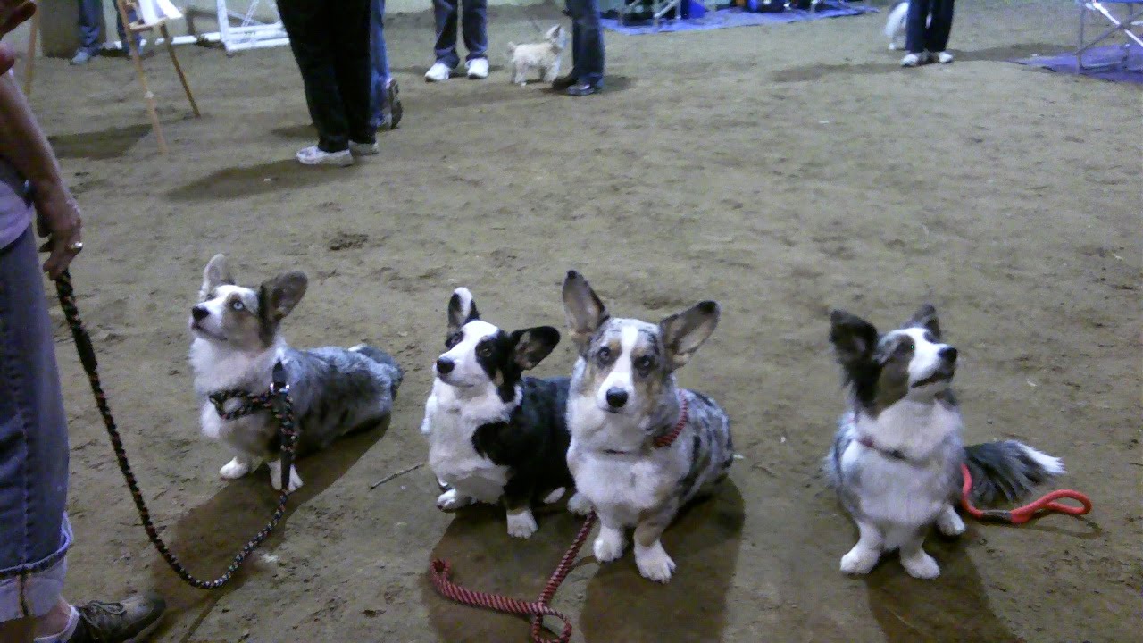 L to R: Ned, Ellie, Dudley and Tinsel at the Northern Arkansas Kennel Club AKC Agility trial in Berryville, Arkansas on May 8, 2010.