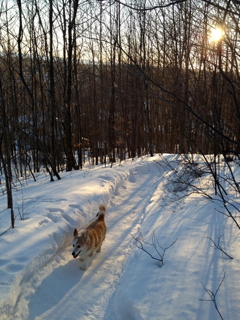 “Our girl still walks up to the ski hill and back with my husband Claude at least once or twice a week. It’s a good three mile walk round-trip. She also still runs around the house in circles at full tilt many times a week (FRAP!). Even at her age, she is in incredibly great shape.”